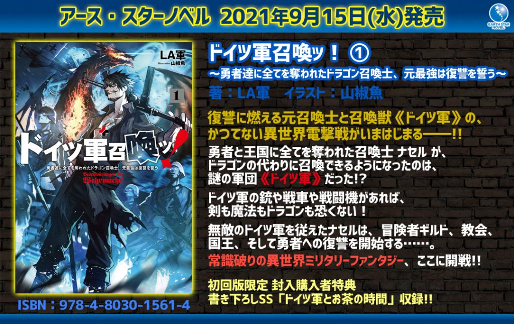 「ドイツ軍召喚ッ! ~勇者達に全てを奪われたドラゴン召喚士、元最強は復讐を誓う~」1 ⏩Amazonご購入 ⏩特集ページ