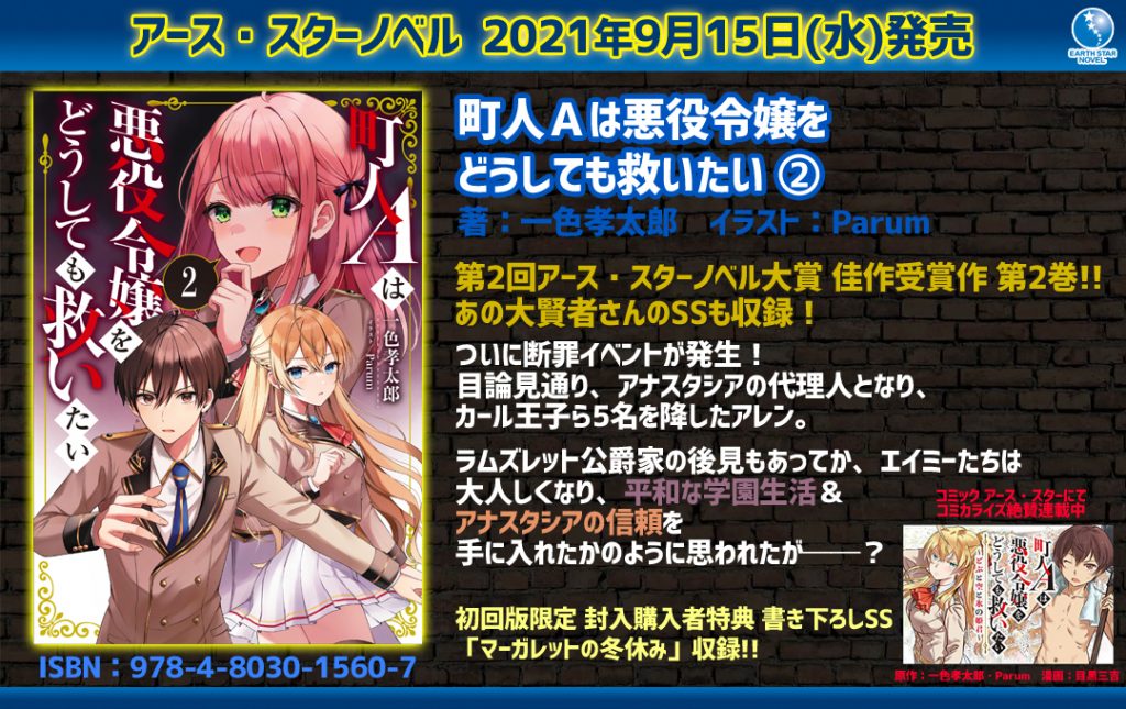 「町人Aは悪役令嬢をどうしても救いたい」2 ⏩Amazonご購入 ⏩特集ページ