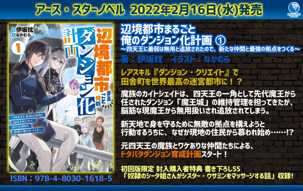 「辺境都市まるごと俺のダンジョン化計画 ~四天王に最弱は無用と追放されたので、新たな仲間と最強の拠点をつくる~」① ★特集ページ