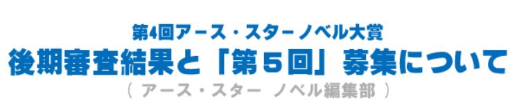 第4回アース・スター ノベル大賞 後期選考結果のお知らせ