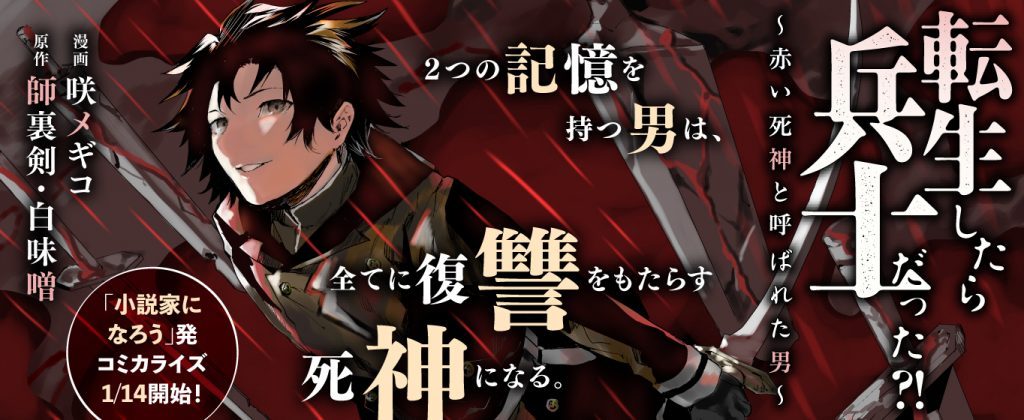 「転生したら兵士だった?! 〜赤い死神と呼ばれた男〜」コミカライズ連載1/14(木)開始!