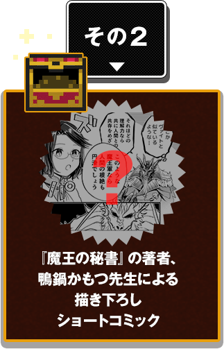 魔王軍に就職して世界征服を推進しすぎる秘書を描いた、JRPG風ファンタジーギャグ漫画。単行本1巻が大好評発売中。