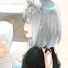 身長161センチぐらい。肩までのセミロングの銀髪。