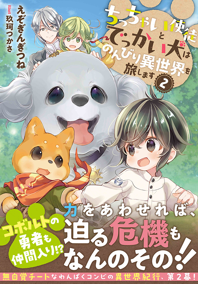 コボルトの勇者も仲間入り!?力をあわせれば、迫る危機もなんのその!!ミナトたちは暴れている聖獣がいるという北の隣国へ向かう。道中、呪いで倒れているコボルト、コリンを助けることに。コリンは“コボルトの勇者”で、疫病からコボルトの村を助けるために薬草を集めていたという。ミナトたちは村へ駆けつけ、次々と使徒の力でコボルトたちを救うが、疫病の背景には預言者を名乗る謎の男がいて──。無自覚チートなわんぱくコンビの異世界紀行、第2幕!