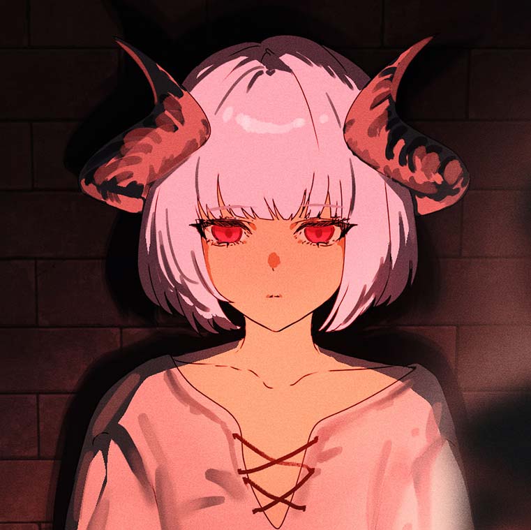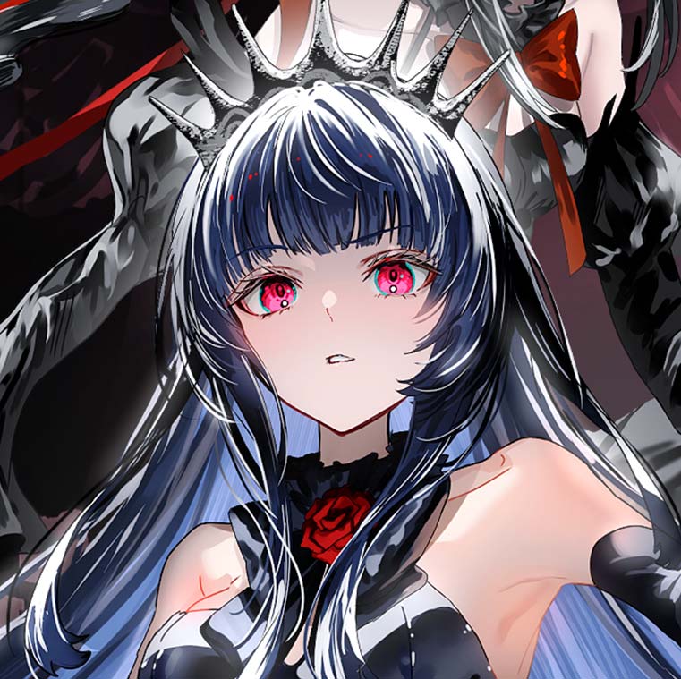 ゴスロリに身を包む魔を統べる女神。光の女神メルティスと敵対している様子だが、なぜ敵対しているのかについて詳細は不明。 大好物はふわふわのパンケーキで、カリカリのベーコンが乗っていると喜びのあまり小躍りするほど。 困ったことに嫌いな食べ物が多く、捧げ物をする際に苦手な食べ物を祭壇に置くと、物凄く不機嫌な様子で現れるので注意が必要。甘味を捧げるのが無難だろう。